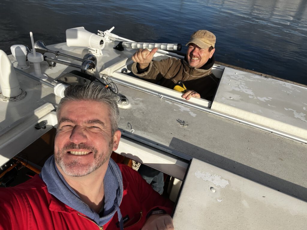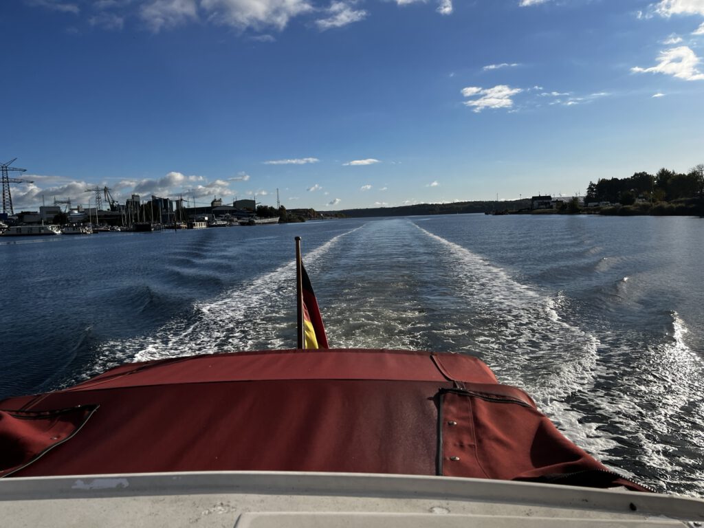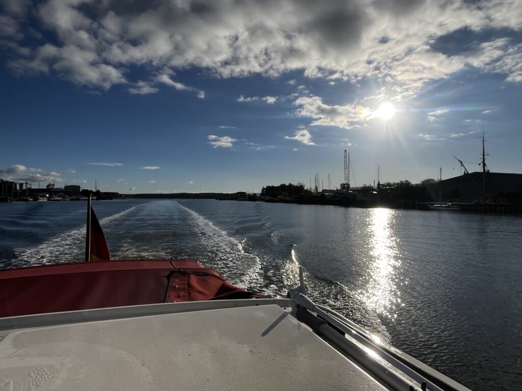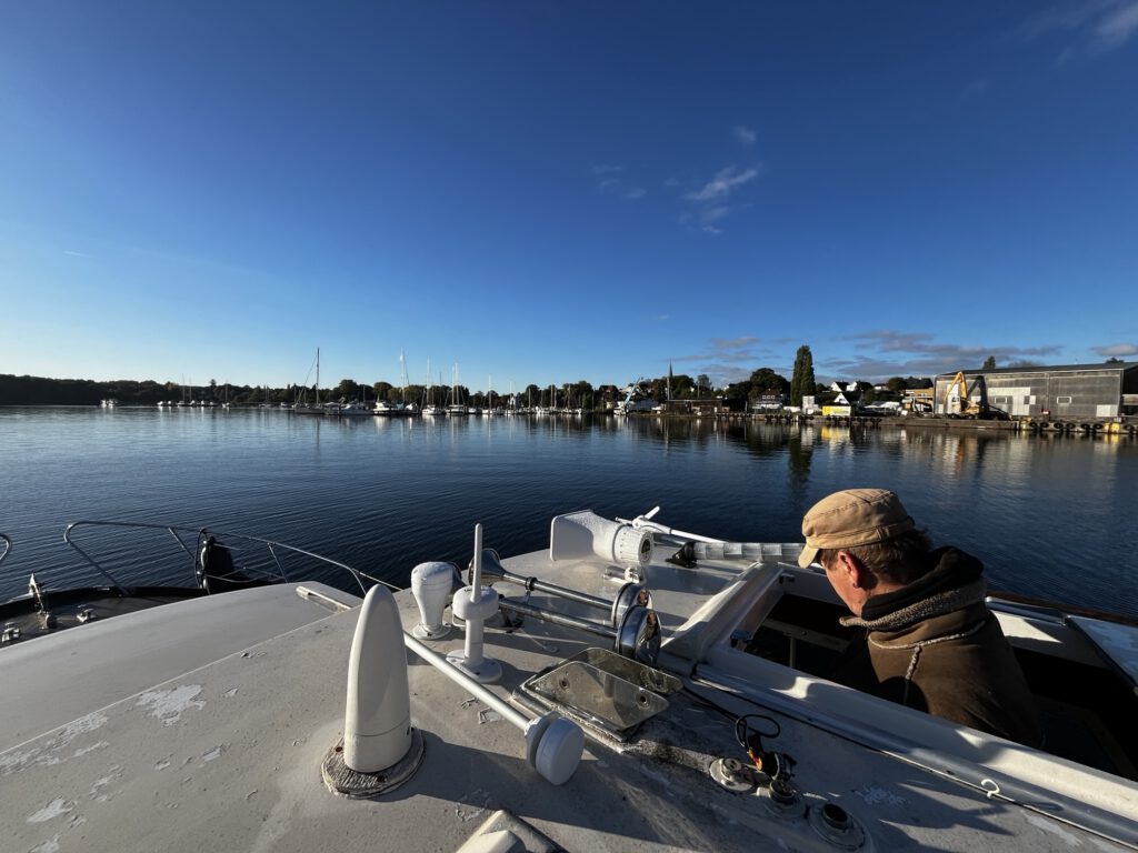 Am frühen Vormittag kam Bruder Lars noch einmal an Bord, um gemeinsam mit Björn eine letzte, rund sechs Kilometer lange Fahrt Richtung Schlutup zu unternehmen. Ziel war es, die beiden Perkins-Motoren ein letztes Mal für dieses Jahr ordentlich warmzufahren, bevor sie am Abend eingemottet werden.