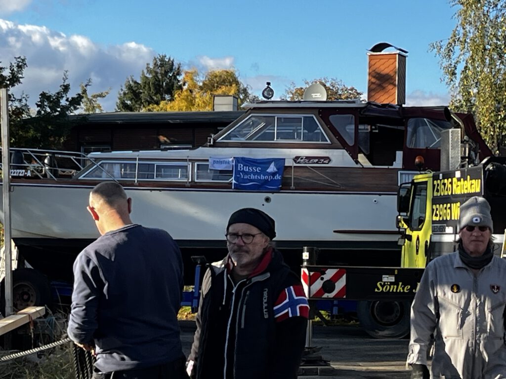 Während Eigner Björn sich danach tatkräftig bei der Verholung anderer Boote seiner Stegnachbarn engagierte, kam am Nachmittag gegen 15 Uhr schließlich die Marisol an die Reihe.